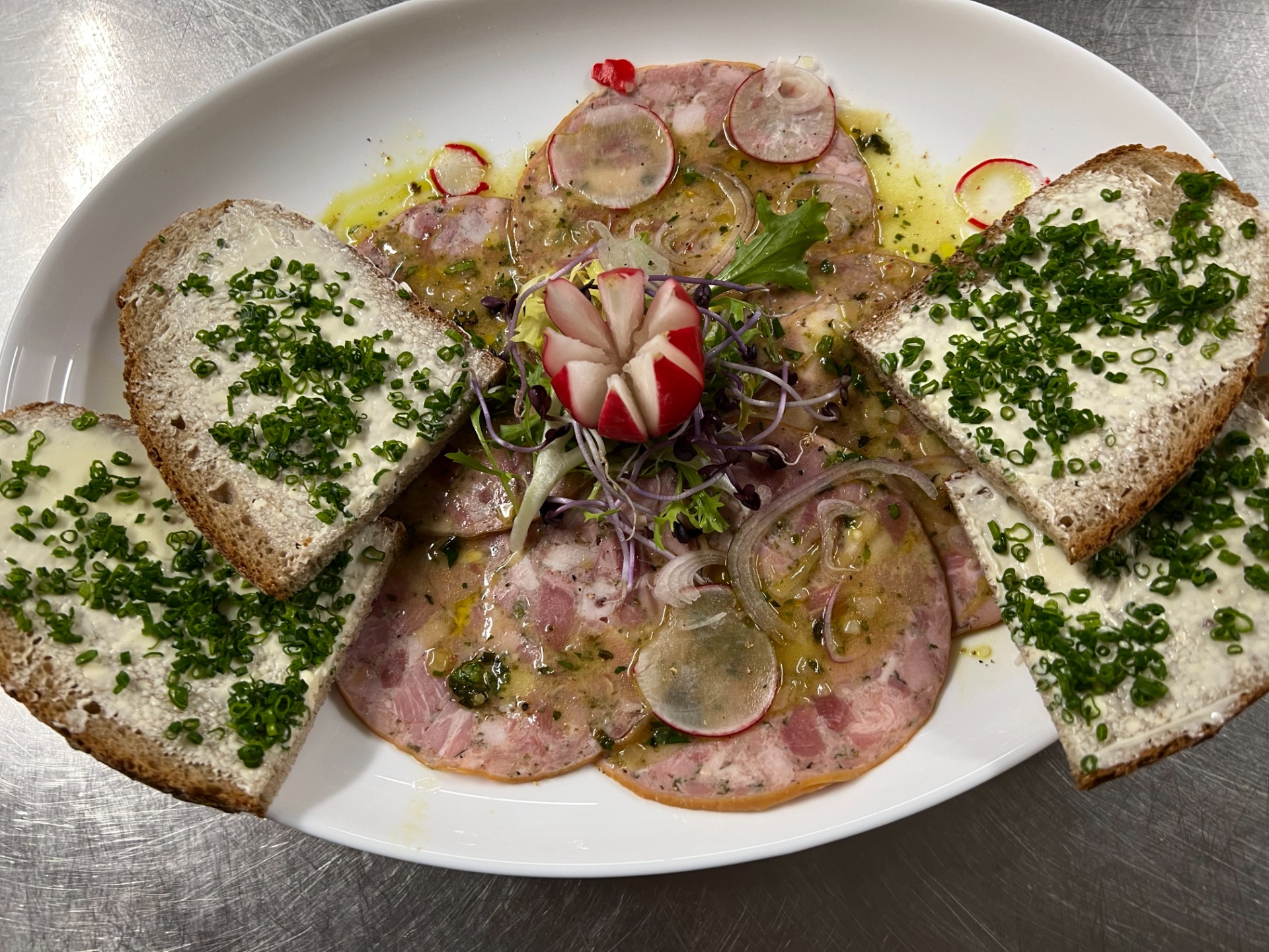 Unsere Küche lebt von der Nähe zur Region: Kartoffeln, Gemüse und Kräuter stammen – wann immer möglich – von Höfen aus der Umgebung, Wurst- und Fleischspezialitäten beziehen wir von langjährigen Partnern, die für Qualität und verantwortungsvolle Erzeugung stehen. So schmeckt man bei jedem Gericht die Frische und die Verbundenheit zur Pfalz. Der Duft von frisch gebackenen Flammkuchenbrezeln, das leise Zischen, wenn die Bratwurst in der Pfanne bräunt, und der Anblick eines liebevoll angerichteten Tellers machen Lust, Platz zu nehmen und den Alltag für eine Weile zu vergessen.